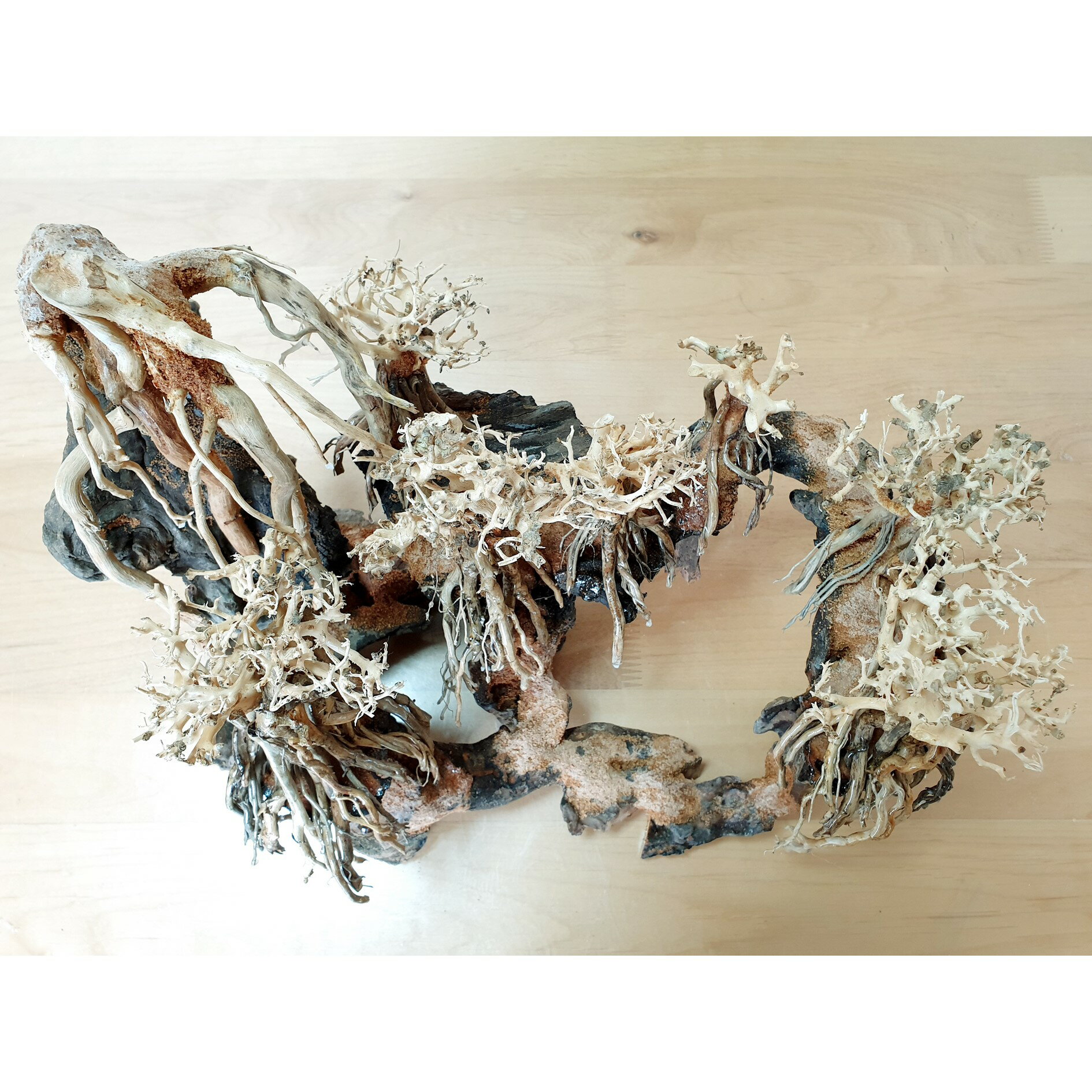 海外の盆栽マングローブ流木です。 職人さんが流木の数百本を使用し、1本ずつ丁寧に編み込んで熱帯雨林のバニヤンをイメージした水槽専用流木アートを100%手作りで製作した商品です。 樹幹部は大きく広がり、横に伸びた枝から多くの気根を出すようなレイアウトとなります。 また、奥に行くにつれて素材の大きさを小さくすると遠近感が出ます。こちらの商品は簡単に遠近感を出せますので、初めてレイアウトする方にもオススメの商品です。 マングローブ流木は、水草が活着しやすく腐りにくい 丈夫な木でもあります。 根元に付いている木の隙間は魚の隠れ屋として活用できます。 モスを活着させるとかっこいいレウアウトを組むことも出来ます。 未使用品ですので、コケやスネイルの混入の心配もありません。 仕様素材:マングローブ 盆栽流木の寸法は下記の通りです。 幅 約43センチ 奥 約25センチ 高 約30センチ 注意事項 ※本品は写真の形状とほぼ同じ商品になります。 ※お使いのモニターの発色具合によって、実際のものと色が異なる場合がございます。 ※商品はマングローブ流木とマングローブ流木を接着させています。 ※よく水洗いしてからご使用ください。 ※写真は600水槽 (60cm×30cm×40cm)の中で撮影しています。 ※こちらの流木は煮込まれておりません。 ※乾燥した状態で保管してある為、すぐに沈まないものがございます。 ※石等の重りなどで強制的に沈めておくと、多くの場合沈むようになります。