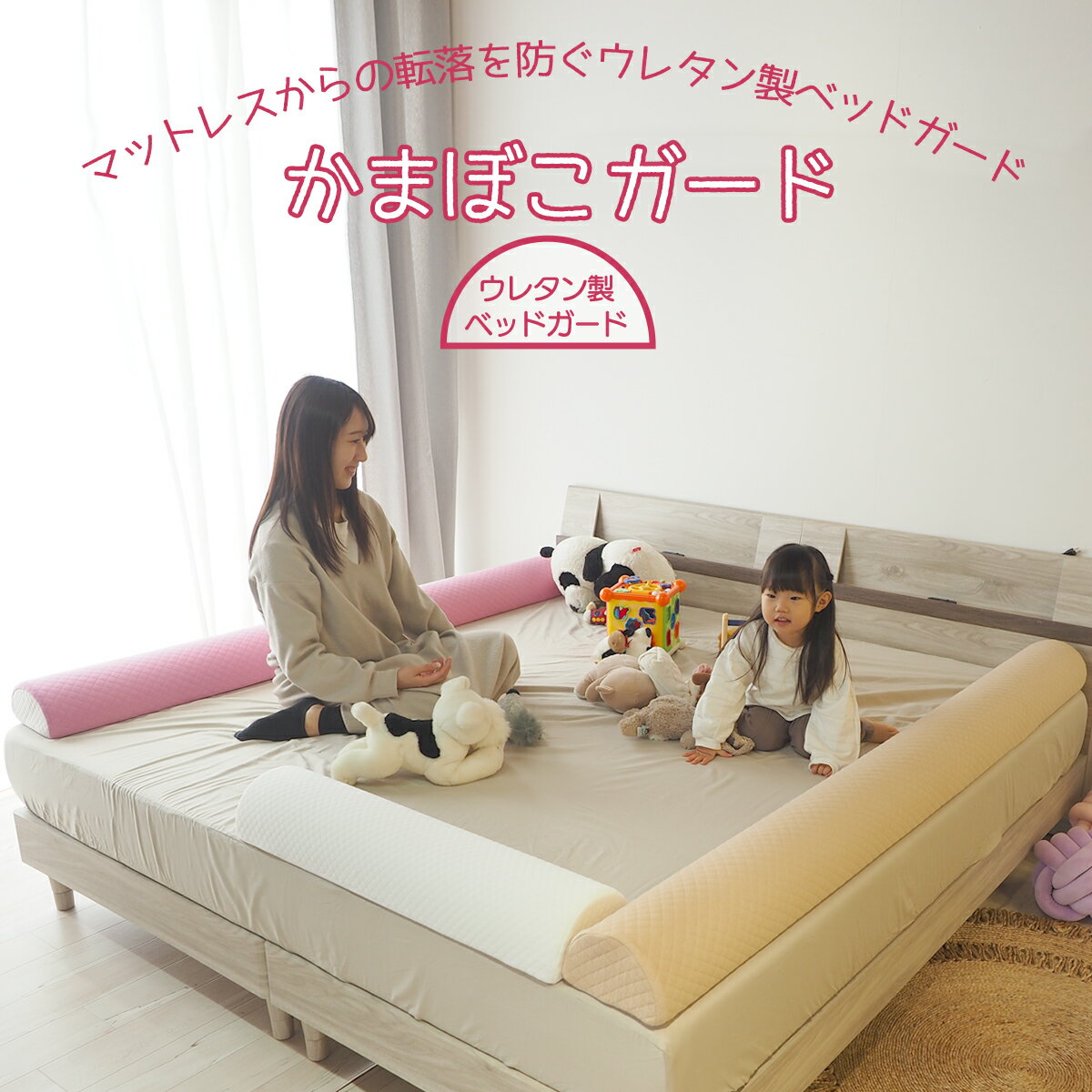 ウレタン製 ベッドガード かまぼこガード 1本(1個) 幼児用ベッドガード 赤ちゃんや子供のための落下防止 ベッドガード 寝返り防止 滑り止め付き 転落事故防止 ウレタン素材 ニット生地カバー付き 幼児 転落防止 ベビー 選べる長さ(190cmもしくは80cm)