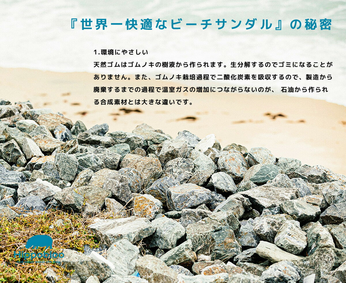 Hippobloo ヒッポブルー ナチュラルラバービーチサンダル 天然ゴム メンズ レディース ユニセックス サンダル ビーチサンダル アウトドア キャンプ プール 海 カラフル