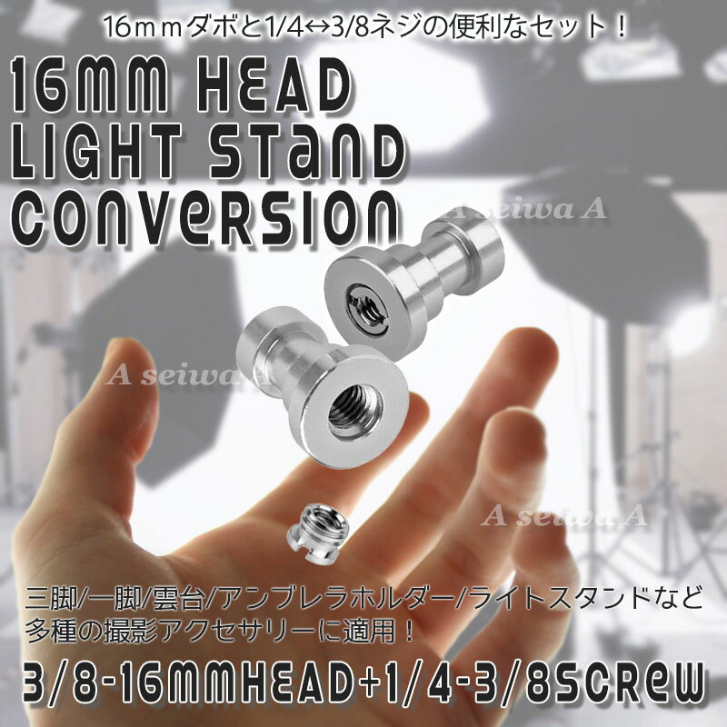 1/4 3/8 インチ メスネジ 16mm オスダボ 変換 スピゴット アダプター カメラ ライト スタンド 三脚 用 送料無料 ポイント消化