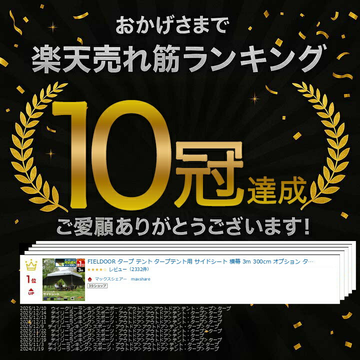【楽天1位】FIELDOOR タープ テント タープテント用 サイドシート 横幕 3m 300cm オプション タープテント専用サイドシート 日よけ シェード 選べる ウォールスクリーン/オールメッシュ/クリア/ハーフクリア/メッシュ窓付き/エントランス 1年保証 ★[送料無料]