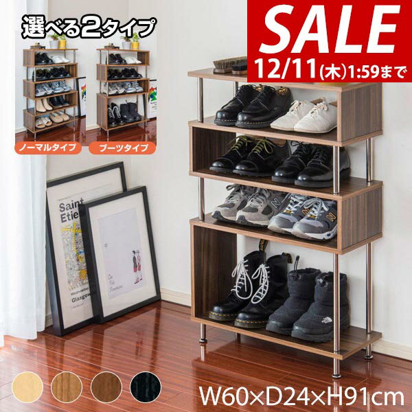 【5,720円→SALE4,950円〜12/11(木)01:59まで】【楽天1位】 シューズラック スリム 幅60cm×奥行24cm 5段/6段 シューズ収納 シューズボックス 玄関収納 靴箱 下駄箱 靴収納 ブーツ ヒール オープンラック おしゃれ 収納棚 収納 木目 コン ★[送料無料]
