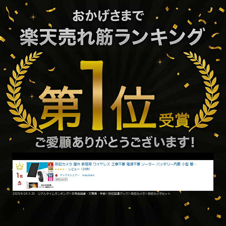 【楽天1位】防犯カメラ 屋外 家庭用 ワイヤレス 工事不要 電源不要 ソーラー バッテリー内蔵 小型 簡単 防犯カメラセット 人感センサー 自動録画 無線 WIFI SDカード録画 クラウド スマホ タブレット アプリ 監視カメラ いたずら 防犯対策 1年保証 ★[送料無料]