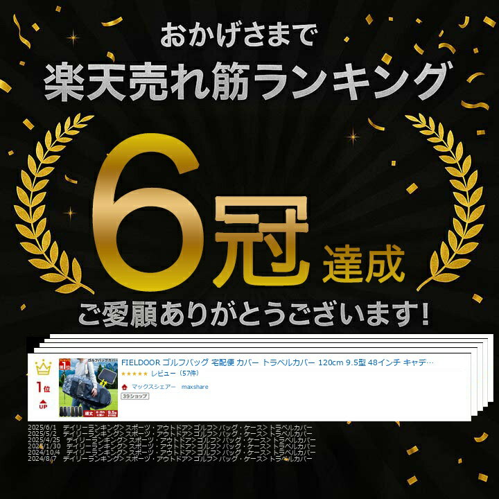 【楽天1位】FIELDOOR ゴルフバッグ 宅配便 カバー トラベルカバー 120cm 9.5型 48インチ キャディバッグカバー YKKファスナー 伝票ポケット付き 高耐久 600D リップストップ生地 ゴルフ便 飛行機 旅行 軽量 収納袋 保管 ゴルフバッグカバー 1年保証 ★[送料無料]