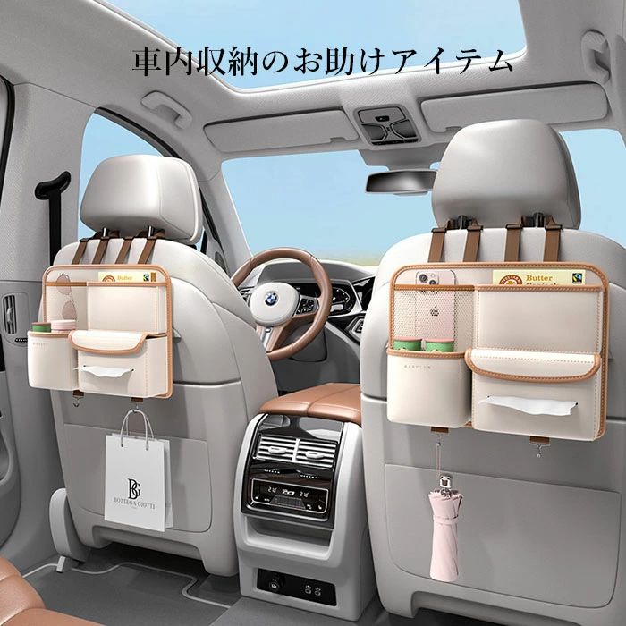 シートバックポケット 車用収納ポケット 車収納バック 車用 車 小物入れ ティッシュホルダー 車用収納ポケット 車内収納袋 後部座席収納バッグ ティッシュボックス 多機能 大容量 小物入れ 水筒/ボトル収納 取り付け簡単 防水防汚 耐摩耗