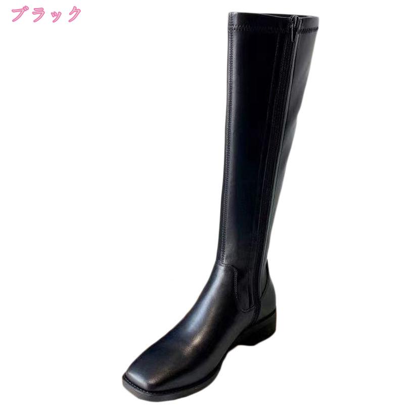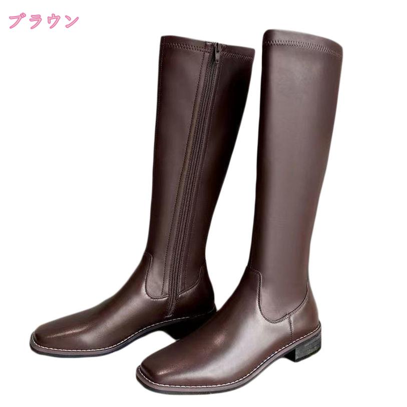 1000円OFFクーポン スクエアトゥ太ヒールストレッチブーツ レディース ロング丈 ローヒール カジュアル ロングブーツ レディース おしゃれ シンプル サイドジッパー 疲れない 履きやすい 脱ぎやすい 防滑 大きいサイズ お出かけ mdnat