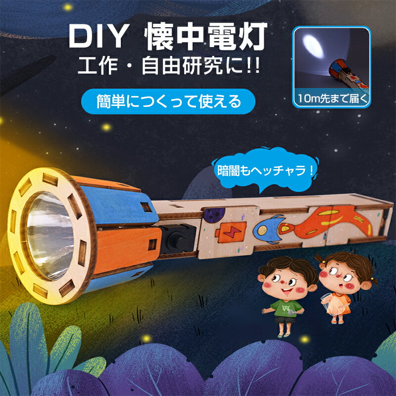 工作キット 手作り懐中電灯 ミニ 子供用 組み立て簡単 電池式 10m先まで届く 子供 自由研究 DIY おもちゃ 知育玩具 学校 制作 夏休み 小学生 プレゼント 教材