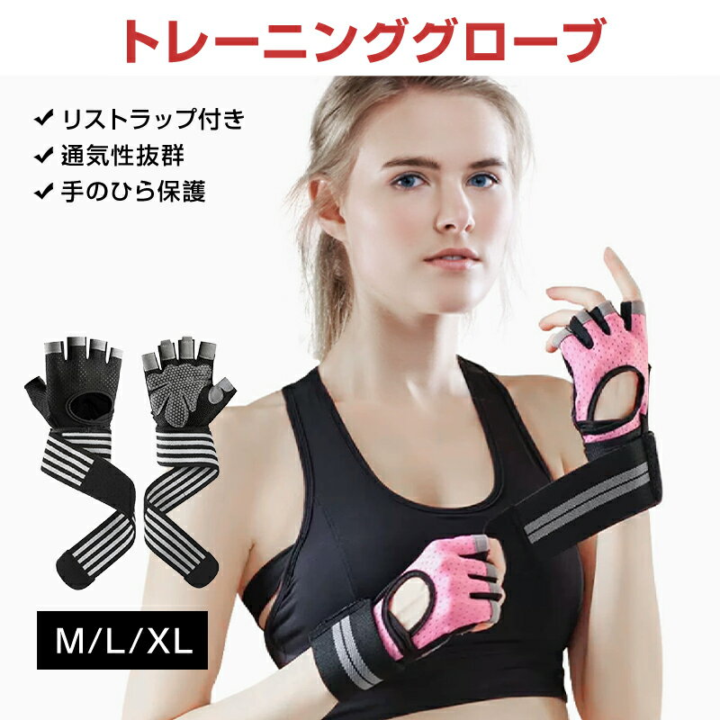 ウェイトトレーニングやダンベル、バーベルなどの筋トレに最適!リストストラップ付きで手首にしっかり固定して、負担を軽減。滑り止め&衝撃吸収パッドが手のひらを保護し、たこやマメを防ぎます。ジムや自宅で筋トレを行う方、手首までしっかりと保護したい方にオススメ!伸縮性のある肌に優しい生地で、手にぴったりフィット。通気性抜群だから、長時間のトレーニング中の汗も発散して蒸れにくい。着脱サポートフック付き。汗をかいていても、簡単に取り外し可能。面ファスナーでお好みのフィット感へ調整可能。ブラックとピンクの2色展開で、男女兼用で使えるデザイン。トレーニングの質を高め、理想のカラダづくりをサポートします。商品名:リストラップ付きトレーニンググローブ素材:ポリエステル、スパンデックスカラー:ブラック、ピンクサイズ:M、L、XL※サイズ表を参考に、適切なサイズをお選びください。フィット感には個人差があります。※製品改良のため、仕様や外観が予告なく変更される場合がございます。※生産ロットにより、商品画像と実物で寸法/形状/色味等が多少異なる場合がございます。※モニター発色の具合により、実物とは色合いが異なる場合がございます。