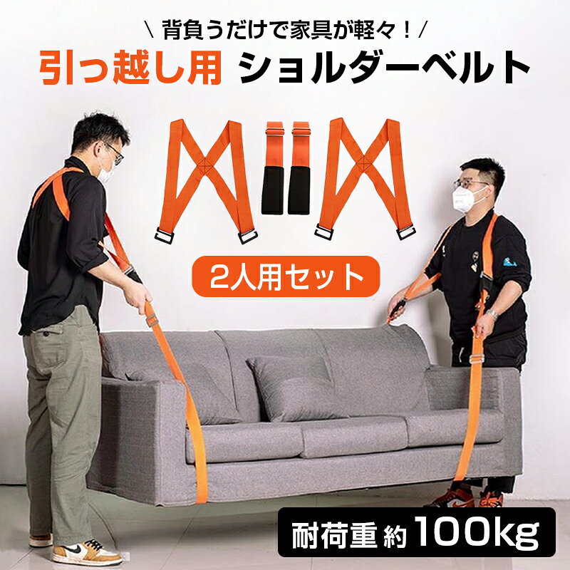 運搬ベルト 引っ越しベルト 2本セット 耐荷重100kg 荷物運搬 家具移動 引越し 大掃除 模様替え 家電 冷蔵庫 洗濯機 ソファー ベッド 腕掛け 肩掛け クロスベルト