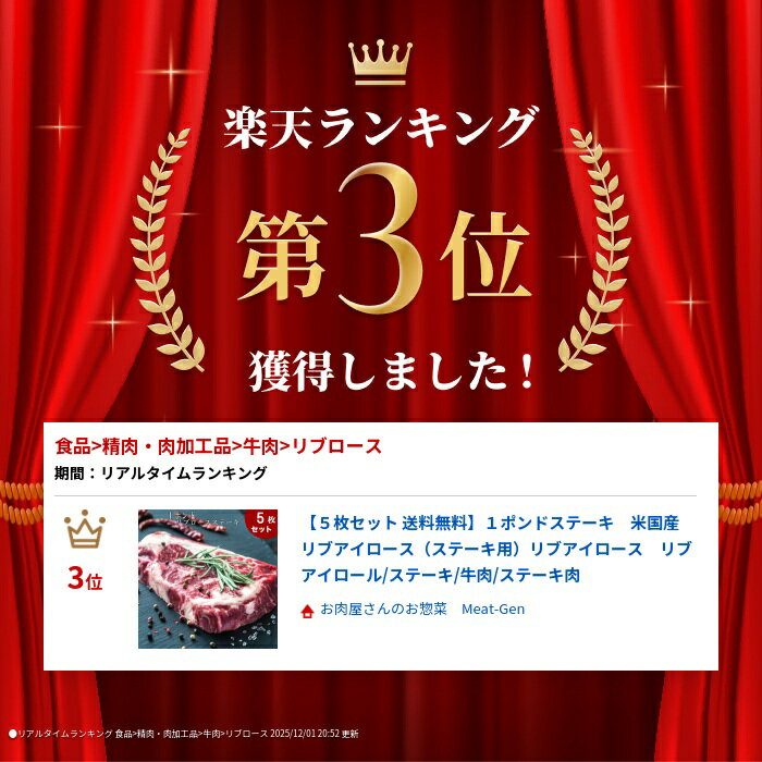 【5枚セット 送料無料】1ポンドステーキ 米国産 リブアイロース(ステーキ用)リブアイロース リブアイロール/ステーキ/牛肉/ステーキ肉