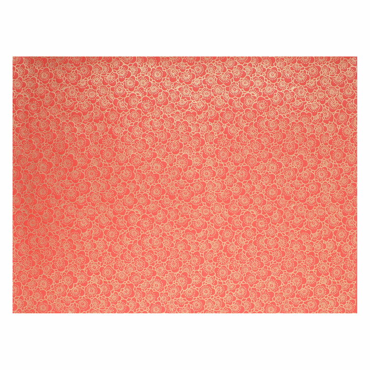 和紙 色鳥の子紙 シルク印刷 梅 赤×金(318-ハ)【約40 × 55cm】1枚