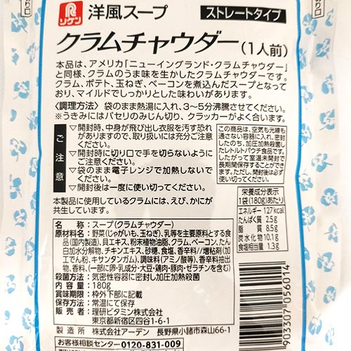 リケン 洋風スープ クラムチャウダー 8袋(1袋 180g) 送料無料 レトルト 朝食 即席スープ 業務用 クリーム風味 ミルキー 理研ビタミン
