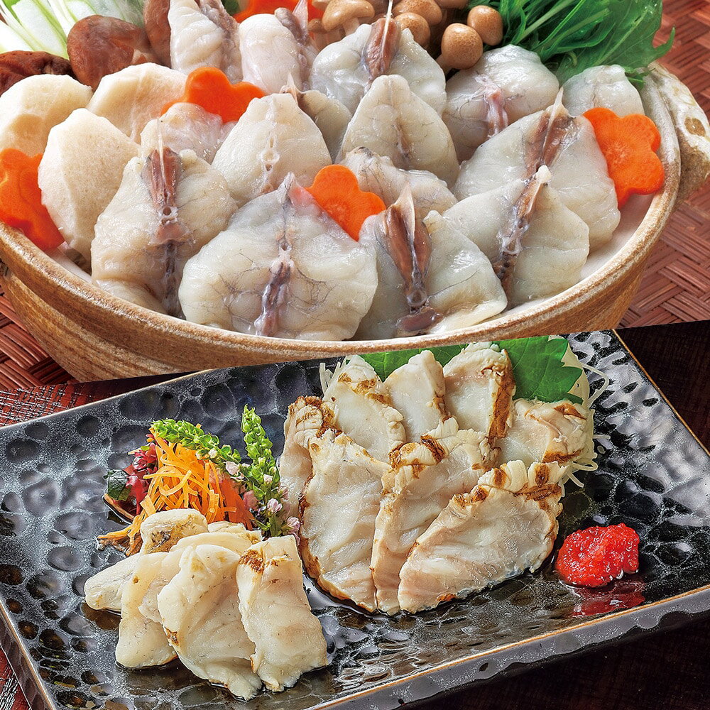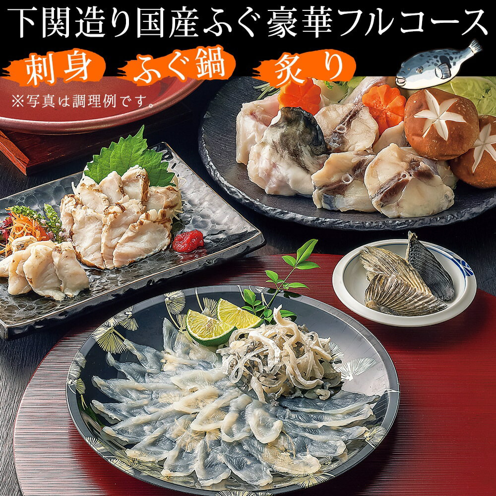 国産ふぐの豪華なフルコースセット!山口・下関の専門店「山賀」によるはぴねすくらぶ限定の「とらふぐフルコース」5人前、大満足のボリュームです。<刺身>「薄造り」[1]直径22cmのプラスチックの皿1枚に35g。[2]皮刺し:25gを皿1枚。オマケでさらに1枚。<ふぐ鍋>[3]とらふぐアラ:300g[4]まふぐ切り身+アラ:350g[5]ポン酢:6袋[6]もみじおろし:6袋[7]スープの素:55g×2<ふぐ炙り>[8]サクの形でお届け。50g切ってお刺身に、ふぐしゃぶに。<ふぐヒレ>[9]ヒレ酒用とらふぐヒレ3枚スペック●セット内容/<とらふぐアラ>300g<まふぐ切り身+アラ>350g<ふぐ炙り>50g<とらふぐ刺身>(60g×2)<とらふぐヒレ>3枚<ポン酢・もみじおろし>×6<スープ>×2●原材料/<とらふぐアラ>とらふぐ(長崎県産、養殖)<まふぐ切身+アラ>まふぐ(新潟県産)<ふぐ炙り>まふぐ(新潟県産)<とらふぐ刺身>とらふぐ(長崎県産、養殖)<とらふぐ干しひれ>とらふぐ(国産)<鍋だし>しょうゆ(大豆・小麦を含む)(国内製造)、食塩、昆布エキス、かつおぶし/調味料(アミノ酸等)、甘味料(甘草)<ポン酢>醤油(国内製造)、砂糖、醸造酢、ゆず果汁、日向夏みかん果汁、昆布エキス、かつお節エキス、酵母エキス/調味料(アミノ酸等)、甘味料(甘草)、(一部に大豆・小麦を含む)<もみじおろし>大根(国産)、唐辛子/アルコール、酸味料、モナスカス色素、増粘剤(グァーガム)、香辛料抽出物●賞味期限/製造日から冷凍6ヵ月●加工地/日本●特定原材料等 /小麦・大豆送料1100円(冷凍便でのお届け、送料は別途頂きます)注意事項※送料割引の適応はお届け先毎です。1回のお申し込み数ではございませんのでご注意ください。