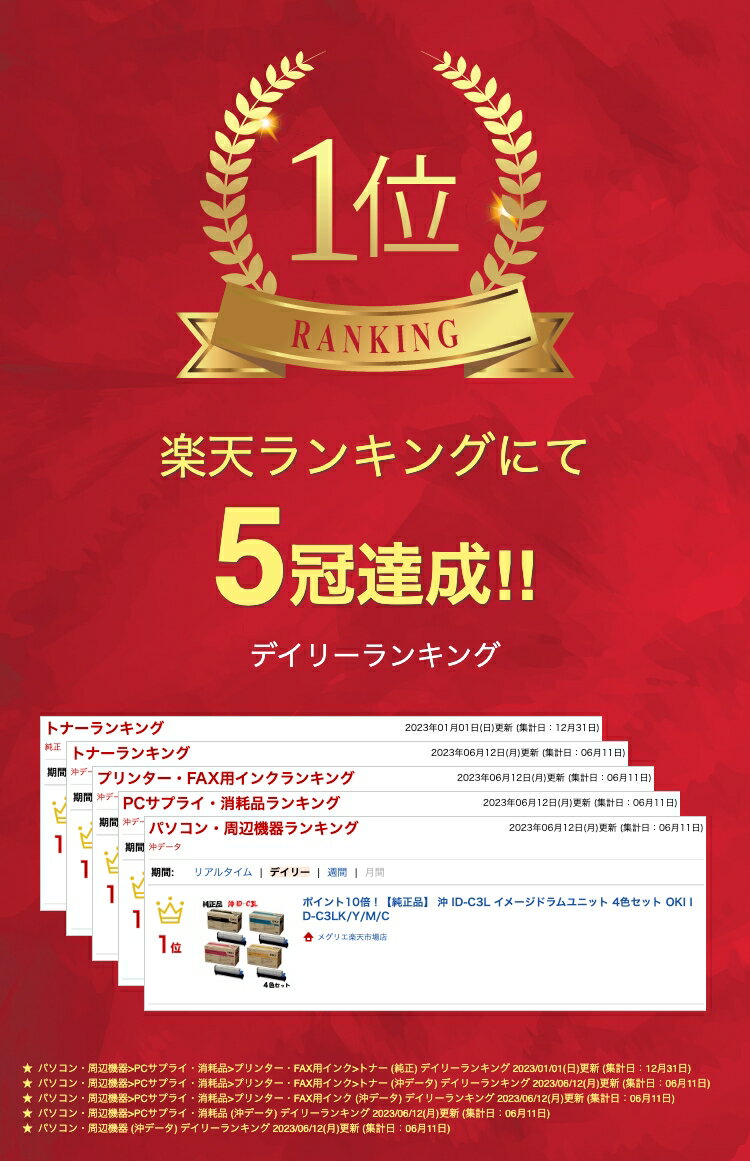 【店内全品エントリーでポイント10倍[27日1:59まで]】ポイント10倍!【純正品】 沖 ID-C3L イメージドラムユニット 4色セット OKI ID-C3LK/Y/M/C