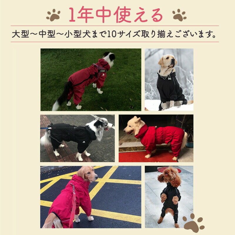 【商品詳細注意事項】オールシーズ、全ての犬種サイズに対応した10サイズ展開のレインコートです。動きやすい4wayストレッチ生地で撥水防水機能も抜群!腹部ゴムベルトにバッグルがあるため体にフィットしてお腹周りの汚れも防いでくれるドッグウェア。背中はファスナー仕様で脱着も簡単です。ワンちゃんの毛を挟まらないように工夫されたファスナー。首回りはゴムバンド入りで更にコードで調整が可能です。見えないリード用ホールは簡単にリードを付けられます。4足の裾にもゴム入りで更にマジックテープで調節。脱げにくいけど着脱しやすく、走り回ってもズレない、動きもしやすいので、犬のレインコート(合羽)として最適です。雨の日のお散歩だけでなく、海辺や海岸、公園での遊び、雪の日の運動にも役立つ犬用のレインコートです。対応犬種小型犬トイプードル ポメラニアン マルチーズ パピヨン フレンチブルドッグ ヨークシャー テリア ブリュッセル グリフォン チワワ 豆柴 パグ シーズー ビションフリーゼ ジャックラッセルテリア ミニチュアシュナウザー ボストンテリア ペキニーズ ミニチュアピンシャー イタリアングレーハウンド ノーフォークテリア ウエストハイランドホワイトテリア スコティッシュテリア中型犬柴犬 ブルドッグ コッカー キャバリア ビーグル イングリッシュ コッカースパニエル アメリカンコッカースパニエル フレブル フレンチブルドッグ ボーダーコリー ワイヤーフォックステリア シェルティー シェットランドシープドッグ大型犬秋田犬 アフガンハウンド イングリッシュセター ゴールデンレトリバー ラブラド-ルレトリバー ゴードンセッター コリー シェパード ドーベルマン バーニーズマウンテンドッグ ロットワイラー ワイマラナー スタンダードプードル超大型犬グレートデン レオンベルガー マスティフ ニューファンドランド セントバーナード グレートピレニーズ【商品詳細注意事項】オールシーズ、全ての犬種サイズに対応した10サイズ展開のレインコートです。動きやすい4wayストレッチ生地で撥水防水機能も抜群!腹部ゴムベルトにバッグルがあるため体にフィットしてお腹周りの汚れも防いでくれるドッグウェア。背中はファスナー仕様で脱着も簡単です。ワンちゃんの毛を挟まらないように工夫されたファスナー。首回りはゴムバンド入りで更にコードで調整が可能です。見えないリード用ホールは簡単にリードを付けられます。4足の裾にもゴム入りで更にマジックテープで調節。脱げにくいけど着脱しやすく、走り回ってもズレない、動きもしやすいので、犬のレインコート(合羽)として最適です。雨の日のお散歩だけでなく、海辺や海岸、公園での遊び、雪の日の運動にも役立つ犬用のレインコートです。対応犬種小型犬トイプードル ポメラニアン マルチーズ パピヨン フレンチブルドッグ ヨークシャー テリア ブリュッセル グリフォン チワワ 豆柴 パグ シーズー ビションフリーゼ ジャックラッセルテリア ミニチュアシュナウザー ボストンテリア ペキニーズ ミニチュアピンシャー イタリアングレーハウンド ノーフォークテリア ウエストハイランドホワイトテリア スコティッシュテリア中型犬柴犬 ブルドッグ コッカー キャバリア ビーグル イングリッシュ コッカースパニエル アメリカンコッカースパニエル フレブル フレンチブルドッグ ボーダーコリー ワイヤーフォックステリア シェルティー シェットランドシープドッグ大型犬秋田犬 アフガンハウンド イングリッシュセター ゴールデンレトリバー ラブラド-ルレトリバー ゴードンセッター コリー シェパード ドーベルマン バーニーズマウンテンドッグ ロットワイラー ワイマラナー スタンダードプードル超大型犬グレートデン レオンベルガー マスティフ ニューファンドランド セントバーナード グレートピレニーズ犬用 レインコート イージー 背中ファスナー ハーネス穴 つなぎ 小型犬 中型犬 大型犬 着せやすい 犬用レインコート 犬の服 ドッグウェア 雨具 犬のカッパ 袖あり 袖有り 雨合羽 防水 撥水 梅雨 雪 ポンチョ カッパ アウトドア 秋服 冬服 犬用のレインコートトイプードル チワワ 柴犬 秋田犬 ポメラニアン フレンチブルドッグ ヨークシャー テリア シーズー ゴールデンレトリーバー