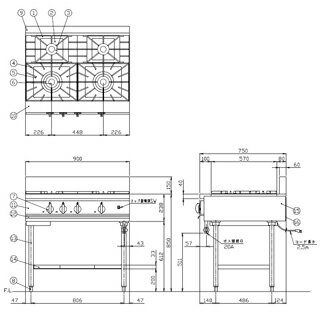 コメットカトウ ガスレンジ DX2シリーズ D=750 テーブルタイプ 900×750×850 DX2-9754T 12A・13A(都市ガス)【 メーカー直送/後払い決済不可 】