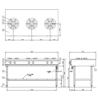 コメットカトウ ガスレンジ XYSシリーズ D=750 テーブルタイプ 1500×750×800 XYS-15753T 12A・13A(都市ガス)【 メーカー直送/後払い決済不可 】