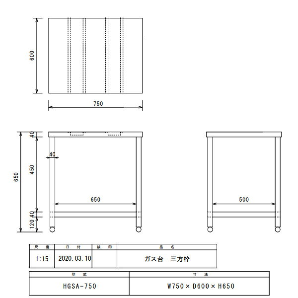 三方枠ガス台 HGSA-750