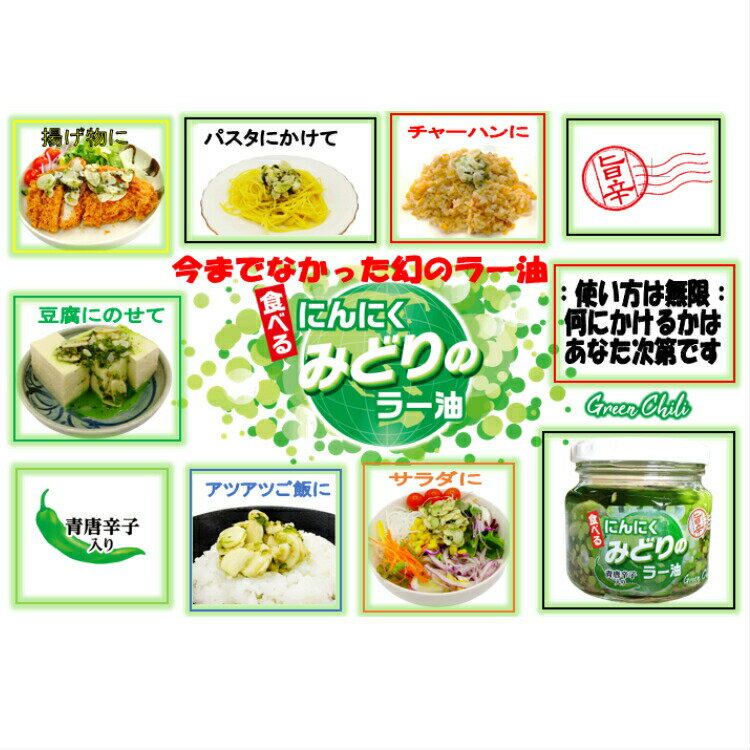 みどりのにんにくラー油(190g)5個セット 食べるラー油 ラー油 青唐辛子 青唐がらし 唐辛子 にんにく ニンニク 惣菜 万能調味料 ラー油鮭ン チャーハン パスタ 豆腐 馬場音一商店 お土産 郡山銘販 まざっせこらっせ