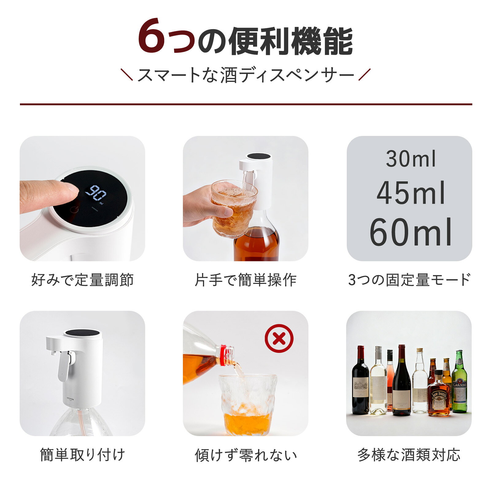 【クーポンで3380円!】Umimile お酒ディスペンサー ウイスキー ポンプ 電動 ディスペンサー 酒 30ml・45ml・60ml定量&無定量 充電式 大瓶ポンプ バー 家庭用 業務用