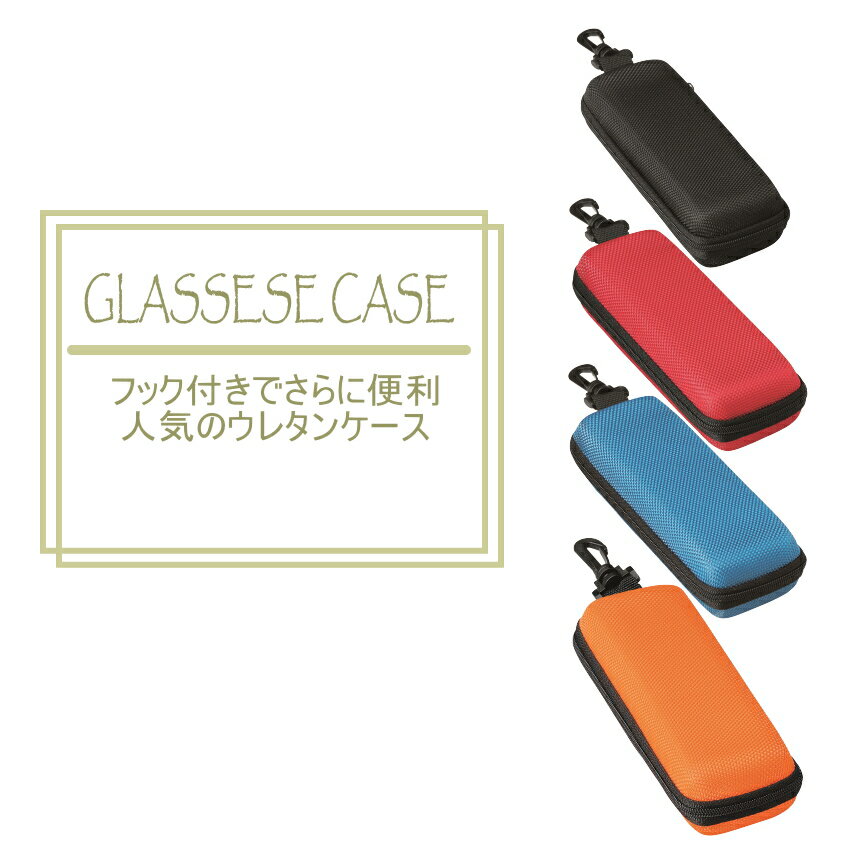 メガネケース フック付きのウレタンケース 丈夫なスクエア型ハードタイプ 2ケお買い上げで送料無料 カラフルなケース ブラック、レッド、ライトブルー、オレンジ