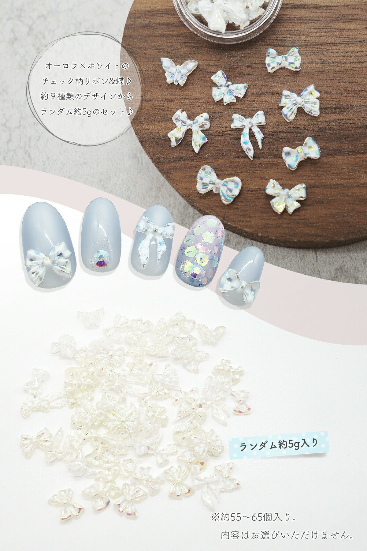 【うるりら公式】ネイルパーツ チェック リボン 蝶 蝶々 ちょうちょラメ アクリルパーツ 夢かわ ホワイト オーロラ 簡単 セルフネイル ジェルネイルシール「うるりら」のアレンジに♪ [NG2202]