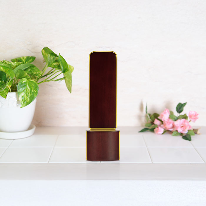寸 サイズ 3.5寸 高さ 16.1cm x 幅 5.1cm x 奥行 3.1cm 4.0寸 高さ 17.6cm x 幅 5.6cm x 奥行 3.6cm 4.5寸 高さ 19.2cm x 幅 6.0cm x 奥行 3.6cm ※文字彫イメージ画像です。紫檀の上品さと、スリムで洗練されたスタイリッシュな形状の現代位牌。 現代位牌『優月 紫檀』 3.5寸:高さ16.1cm 幅5.1cm 奥行3.1cm 4.0寸:高さ17.6cm 幅5.6cm 奥行3.6cm 4.5寸:高さ19.2cm 幅6.0cm 奥行3.6cm ¥19,800~ シャープなシルエットでマットな質感が特徴的なお位牌「優月 紫檀」。高級唐木素材「紫檀」を使用しており、モダン仏壇にも伝統仏壇にも手元供養にも合うお位牌です。唐木位牌とモダン位牌のよいところを合わせもつ現代的な美意識が漂う現代位牌です。現代的な直線的デザインは、安定感があり落ち着いた雰囲気を感じさせてくれます。お客様のお仏壇や供養のスタイルに合うよう、3サイズご用意しております。