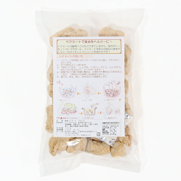 ソイミート ブロック は、ソイミートの唐揚げが作れる、ソイミートの定番、ブロックタイプです。 人気の高い、売れ筋のソイミートです。 油料理を控えている方には焼き鳥風がおすすめです。 唐揚げにしたものを酢豚にしたり煮物、カレー、シチューの具にしたりといろいろなメニューに応用できます。 <調理のしかた> 1、お湯でもどします。熱湯で約10分くらいで、全体がやわらかくなります。 2、水気をしぼります。できれば何度か水を替えて水気をしぼってください。 3、下味をつけます。しょうが醤油や、塩コショー、カレー風味など、お好みで。 4、調理します。煮たり、焼いたり、衣をつけて揚げたりと、いろいろなお料理にチャレンジしてみて下さい。 <こんなお料理ができます!> 唐揚げ、酢豚風、焼き鳥風、筑前煮、カレー、シチュー等 <ブロック> ○やや細長い、ボリュームのある形・大きさになりますが、粒が小さめのものもあります。 ○よりふっくらした、ジューシーな仕上がりになります。 ○原材料、製造メーカーは以下の通りとなり、国内製造品となります。 <株式会社 禅菜 ハーモニーガーデン 大地のたより> ハーモニーガーデンは菜食というライフスタイルを提案していきます。 国内外で作られる植物原料の食材と料理を普及すると共に、日本の風土と文化、時代に適った菜食料理を、誰もが日常的に享受できる環境を創り次世代にわたって永く存続できる、心の社会を築く役割の一端を担って参ります。 ■商品名:大豆ミート 国産 ブロック ソイミート ブロック 低カロリー ひき肉 ブロックタイプ ヴィーガン ビーガン ベジタリアン 玄米菜食 唐揚げ 酢豚 もどき料理 送料無料 ■内容量:200g ■原材料名:エンドウたん白、粉末状大豆たん白(非遺伝子組換)、食物繊維(大豆・非遺伝子組換)、脱脂大豆(非遺伝子組換)、でん粉(とうもろこし・非遺伝子組換) ■メーカー或いは販売者: ■賞味期限:製造より未開封で1年 ■保存方法:常温 ■区分:食品 ■製造国:日本【免責事項】 ※記載の賞味期限は製造日からの日数です。実際の期日についてはお問い合わせください。 ※自社サイトと在庫を共有しているためタイミングによっては欠品、お取り寄せ、キャンセルとなる場合がございます。 ※商品リニューアル等により、パッケージや商品内容がお届け商品と一部異なる場合がございます。 ※メール便はポスト投函です。代引きはご利用できません。厚み制限(3cm以下)があるため簡易包装となります。 外装ダメージについては免責とさせていただきます。