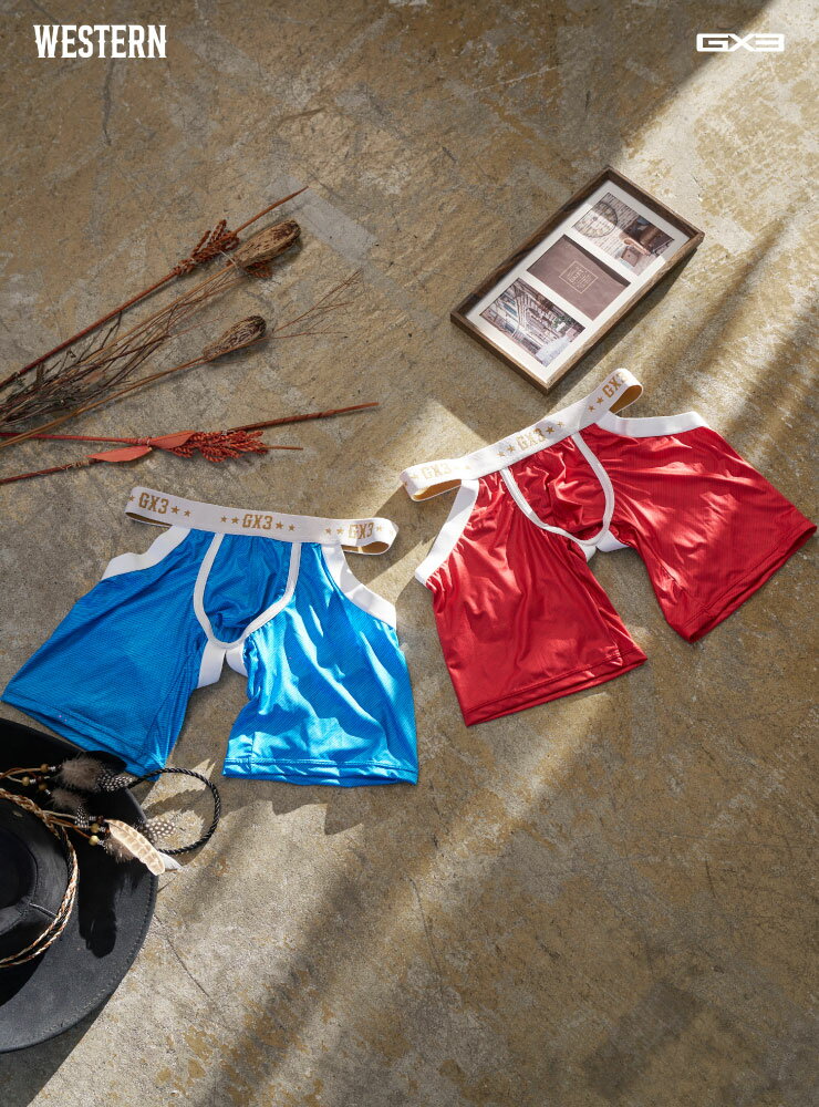 乗馬の際、カウボーイがボトムスの上から着用するカバーを、パンツとしてGX3流に大胆アレンジ。サイドからバックにかけて大きく肌を魅せる、斬新&ワイルドなスタイル。滑らかな光沢生地は、程よい伸縮性で、優れたフィット感。 通常、生地で覆うべき部分をくりぬいた、お尻丸見えのバックスタイル。幅広ゴムのストラップが、ヒップラインに沿ってお尻を引き締める刺激と、肌を覆う生地が少ない解放感バツグンの穿き心地を楽しめる。 タフさとワイルドな魅力をまとい、自信あふれるスタイルへ。 ウエスタン風アンダーウェア・コレクション GX3【WESTERN】 中国産 ポリエステル81% ポリウレタン19% ウエストサイズ(平置きの目安) S 約30-33cm M 約32-35cm L 約34-37cm XL 約36-39cm XXL 約38-41cm ※洗濯の際、他のものと分けてご面倒でも手洗いをおすすめします。洗濯後は形を整えてすぐに干してください。乾燥機の使用はお控えください。 ※生地にプリントしているため、伸縮時や縫製箇所等、色が薄く見える場合があります。 ※転写プリントのため、裏地は白色となります。 GX3オススメ商品はコチラ! オススメ商品はコチラ!
