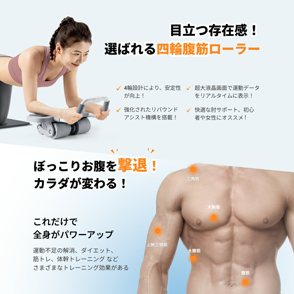 四輪腹筋ローラー アブローラー 4輪 超大液晶画面 膝マット付き type-c充電 スマホスタンド付き 静音 プロ 腹筋マシン 腹筋トレーニングマシン 自宅エクササイズ ダイエット 筋トレ 器具 体幹 鍛える 胸筋 筋肉 筋力 初心者