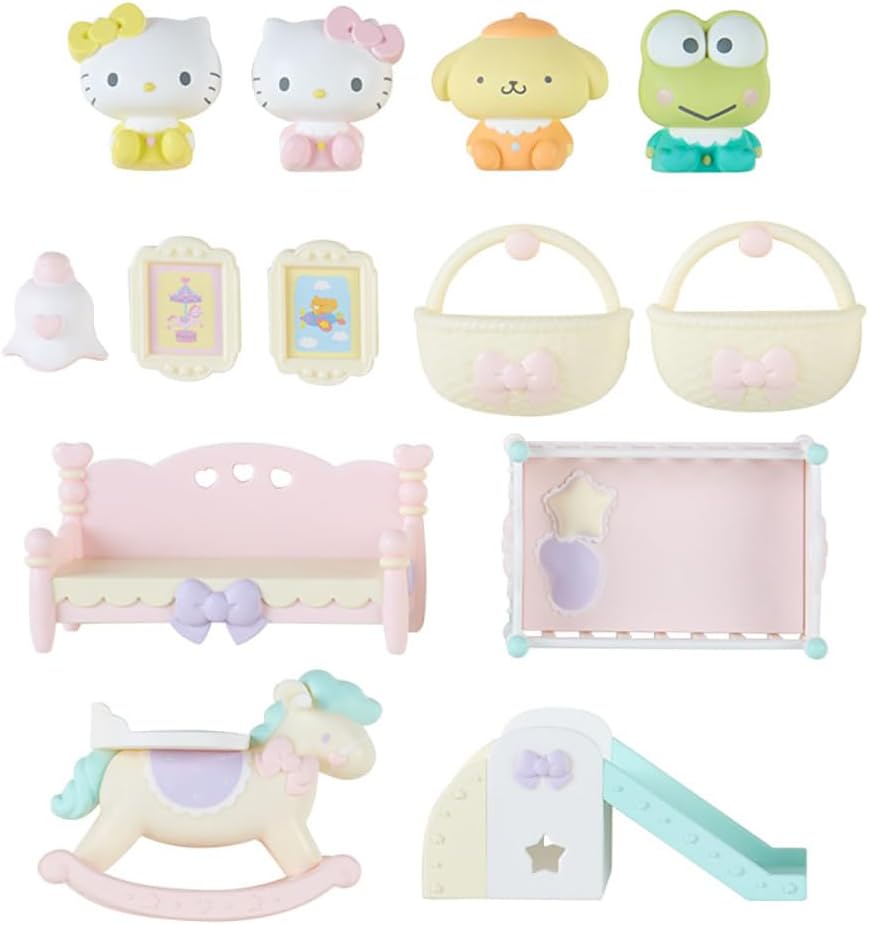 ご購入後レビュー投稿で、次回当店で使える「5%OFFクーポン」をプレゼント中!! ※最短でのお届けをご希望の場合は、ご注文内容確認画面にて、お届け日を最短の日にちにてご指定下さいませ。 またお届け日がご指定されてない場合は、1日〜4日での発送となりますので、お急ぎの場合はお届け日をご指定の上、ご注文下さいませ。 なおお支払い方法を「銀行振込」か「コンビニ・郵便局等(前払)」にてご指定頂いきました場合は、お届け日の指定は出来ません。 思わず顔がほころぶキッズ ウインターギフト ベビーなサンリオキャラクターズのラブリーなおうちへようこそ 遊ばない時も飾っておきたくなるかわいさ♪ ■ サイズ パッケージ:約幅37.5×奥行8.5×高さ31.5cm ドールハウス:約幅32×奥行13×高さ19cm ドール(キティ・ミミィ):約幅3.5×奥行3×高さ4cm ドール(ポムポムプリン):約幅4.5×奥行3×高さ3.5cm ドール(けろけろけろっぴ):約幅3×奥行2.5×高さ4cm ■ 主な素材、原料 ABS樹脂、紙 ■ 詳細 ●組み立て式ドールハウス ●使わない時は畳んで収納できる ●ハウスをつなげて自分だけのハウス作りが可能 ●対象年齢3才以上 ※部品の別売はございません。あらかじめご了承ください。