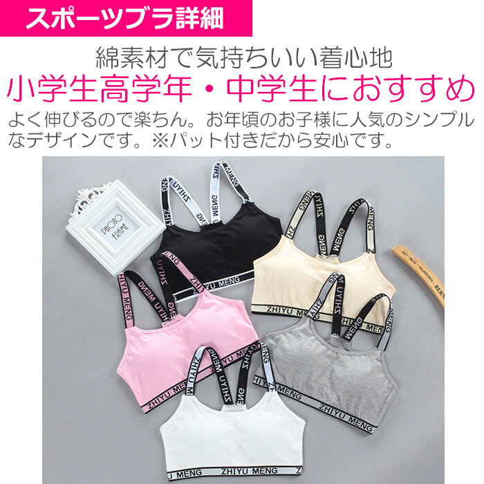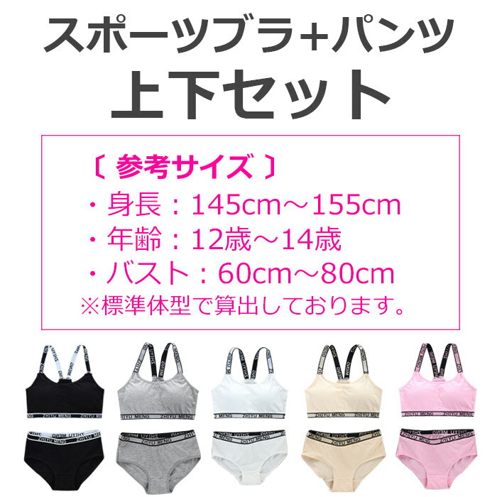 【訳あり】ジュニア向け 上下セット スポーツブラとショーツの2点セット カップ付き 女の子 子供用下着 肌着 145cm〜155cm 12才〜14才 肩ひもロゴ ロゴテープ 無地 ピンク グレー ブラック フリーサイズ ファーストブラ アンダーウェア 小学生 中学生