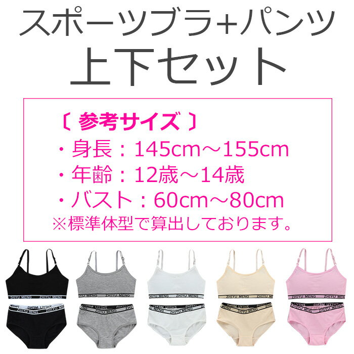 【訳あり】ジュニア向け 下着 上下セット 肩ひも調整式 スポーツブラとショーツの2点セット カップ付き 女の子 子供用下着 肌着 145cm〜155cm 12才〜14才 ロゴテープ ピンク グレー ブラック フリーサイズ ファーストブラ アンダーウェア 小学生 中学生