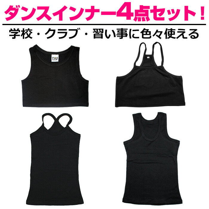 送料無料 キッズダンスに【いるいるインナー】 4点セット チューブトップ タンクトップ キャミソール 女の子 子供服 キッズ 無地 ブラック ホワイト 110cm〜160cm 小学生 中学生 ダンス衣装 ヒップホップ ジュニア インナー下着 女児 アンダーウェア ブラトップ