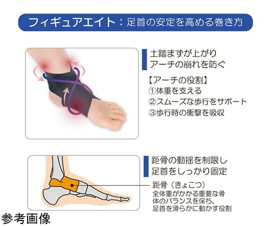 【特徴】 フィギュアエイトの効果を応用した足関節固定バンド。 足首の安定を高める巻き方、フィギュアエイトの効果を応用。 適度な伸縮性で足首をしっかり固定重心がブレにくい。 面ファスナーで着脱簡単。 左右兼用。 【仕様】 カラー:ブラック サイズ:LL 素材:ポリエステル、ナイロン、レーヨン、ポリウレタン バンド寸法:8×55cm ※商品画像は代表的な商品を表示しており、品番により異なる場合がございます。