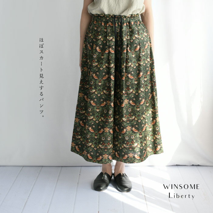 【再入荷】WINSOME Liberty ウィンサムリバティウィリアムモリス <STRAWBERRY THIEF いちご泥棒(S)>ロング キュロット コットン パンツWilliam Morris moda fabric【日本製】【ハンドメイド】(31WSL-BIBIANA-MSS)(202309)