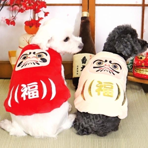 「笑福招来」、笑う門には福来る 縁起物のだるまをモチーフにしたベスト、年末年始のイベントにピッタリ 年賀状や新年会など2026年を初笑いで迎えましょう♪ シンプルな前開きベルクロのベスト型、頭を通して洋服を着るのが苦手な子も着せやすくてgood 防寒対策として重ね着にも使えます レッドとホワイトの2色展開 「赤だるま」は魔除けの効果がある色とされており、病気や災難を防ぎ「家内安全」「無病息災」「開運吉祥」などの意味が、「白だるま」は「目標達成」「受験合格」「心願成就」などの意味が込められていると言われています。 小型犬サイズから大型犬サイズまであります。 ご注意: サイズをご確認の上、ご購入ください。 ●洗濯の際は、裏返して優しく手洗いするか、洗濯機の弱いモードで洗ってください。 ●1~3cmの誤差がある場合がございます ●衛生管理上、お客様ご都合の返品・交換は不可となります ●PC環境や光の加減により、色や素材のイメージが写真と若干異なる場合がございます。