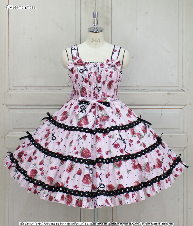 メタモルフォーゼ Lady Fruit シャーリングティアードジャンパースカート【2サイズ展開】【ロリータファッション ロリィタ Plus Size】