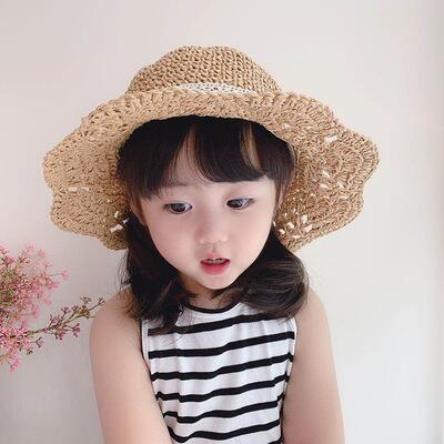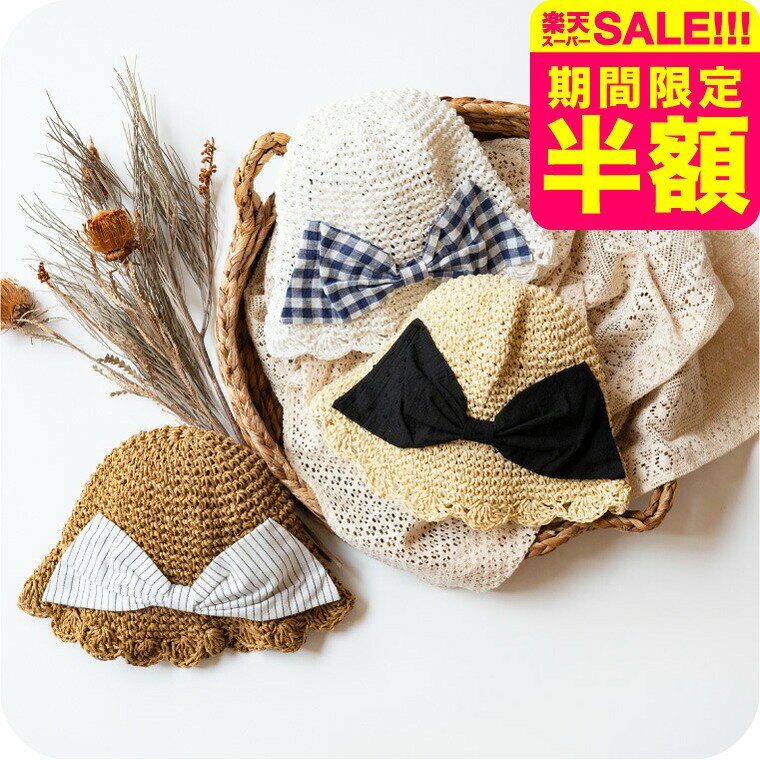 子供帽子春夏キッズ帽子リボン使いの麦わら帽子日焼けペーパーハット子供用帽子女の子麦わらカジュアル帽子キッズネコポスリボン付きリボン3-8歳向け48-52cm