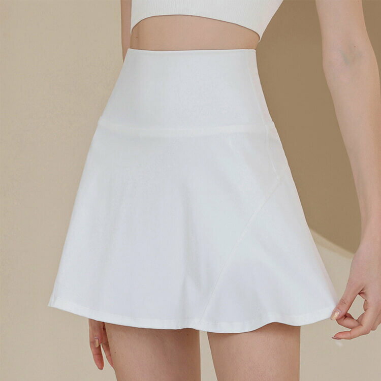 商品番号4665スポーツ用ハイウエストスカート付きパンツ。ハイウエストでお腹をしっかりカバーして。上品なフレア切り換えデザインで大人可愛くみせつつ、足長スタイルup見せ。通気性に優れた快適でスポーツに特化した素材。インナーパンツにはポケット付きで実用性にも優れて便利。フィットネスやランニング、テニスのスポーツウェアのボトムとして。サイズs(ウエスト54cm/ヒップ88cm/パンツ丈37cm)m(ウエスト58cm/ヒップ92cm/パンツ丈38cm)l(ウエスト62cm/ヒップ96cm/パンツ丈39cm)xl(ウエスト66cm/ヒップ100cm/パンツ丈40cm)素材ナイロン85%、スパンデックス20%カラーホワイト、ピンク、ブルー、グレー、ダークグレー、ブラックお色に関しまして ・お客様のご覧になられますパソコン機器及びモニタなどの違い、また室内、室外での撮影により実際の商品素材の色と相違する場合もありますのでごください。 なお著しい相違はございませんのでご安心ください。