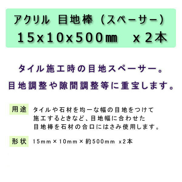 アクリル 目地棒(スペーサー)15x10x約500mm×2本タイル 施工 隙間調整 DIY 補強工具 石材 建築資材 工作 芯材 支柱大理石 御影石 天然石 副資材