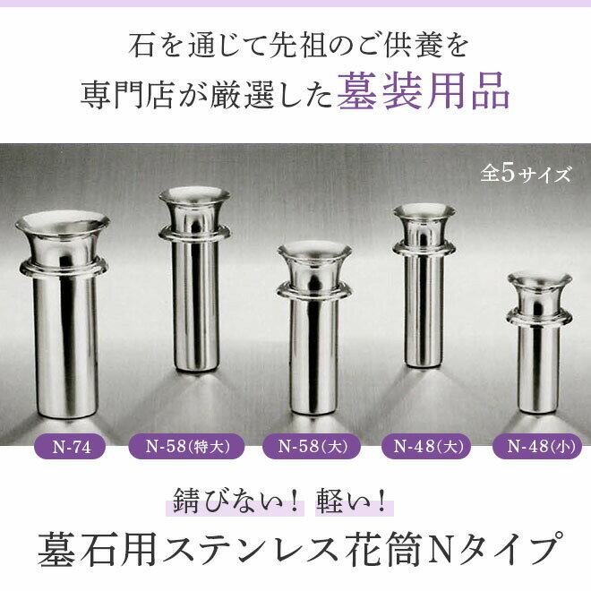 墓石用ステンレス花筒Nタイプ 口径78〜110mm 1対(2本セット)HIKARI 墓装用品 仏具 お墓 ペットのお墓 仏壇小物 納骨堂 お地蔵様 花立て