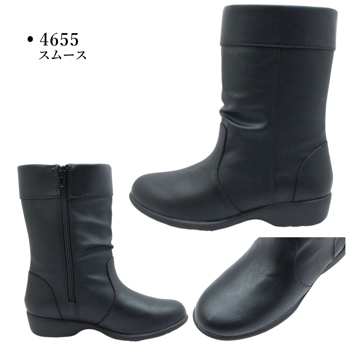 トパーズ TOPAZA レデイース スノーシューズ カジュアル TZ-4655 TZ-4656 防水 防滑 4E幅広 ブーツ 婦人靴 ブラック 4655 4656 雪の日も雨の日も活躍!防水・防滑機能を搭載したウィンターシューズ。 接地面から4cm×8時間の防水基準をクリアした設計で、靴底からの水の染み込みを防ぎます。 アウトソールには防滑性の高いソールパターンに加え、マジックセンサー(0℃以下で硬くなり始め、圧雪に突き刺さる程度の硬さになり雪や凍結路面で抜群のスパイク力を発揮する)を採用し防滑性を確保。 ゆったりと締め付け感のない、幅広4Eタイプで足が痛くなりにくいのが嬉しいポイントです。 ■商品詳細 ・靴幅:4E ・総丈:約25.5cm(ヒール含む) ・履き口の内周:約 34.0cm ・素材:合成皮革 ・ソール:合成底 ・重 量:約315g (23.0cm片足) ■品番 TZ-4655:スムース素材 TZ-4656:スエード素材トパーズ TOPAZA レデイース スノーシューズ カジュアル TZ-4655 TZ-4656 防水 防滑 4E幅広 ブーツ 婦人靴 ブラック 4655 4656 雪の日も雨の日も活躍!防水・防滑機能を搭載したウィンターシューズ。 接地面から4cm×8時間の防水基準をクリアした設計で、靴底からの水の染み込みを防ぎます。 アウトソールには防滑性の高いソールパターンに加え、マジックセンサー(0℃以下で硬くなり始め、圧雪に突き刺さる程度の硬さになり雪や凍結路面で抜群のスパイク力を発揮する)を採用し防滑性を確保。 ゆったりと締め付け感のない、幅広4Eタイプで足が痛くなりにくいのが嬉しいポイントです。■商品詳細 ・靴幅:4E ・総丈:約25.5cm(ヒール含む) ・履き口の内周:約 34.0cm ・素材:合成皮革 ・ソール:合成底 ・重 量:約315g (23.0cm片足)■品番 TZ-4655:スムース素材 TZ-4656:スエード素材