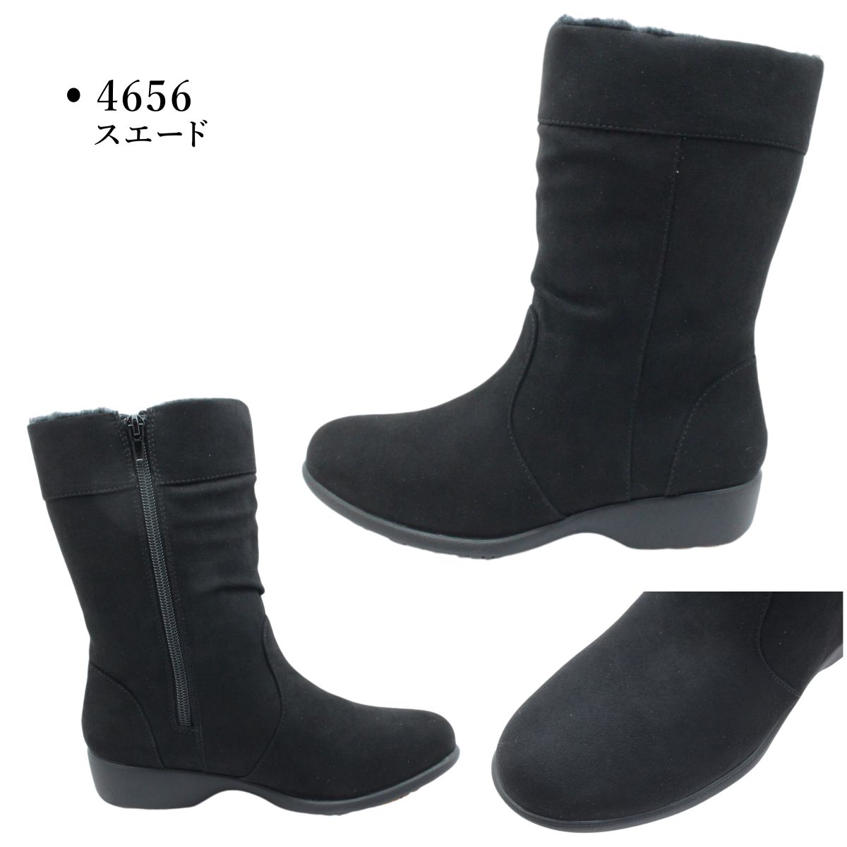 トパーズ TOPAZA レデイース スノーシューズ カジュアル TZ-4655 TZ-4656 防水 防滑 4E幅広 ブーツ ミドル丈 婦人靴 ブラック 4655 4656