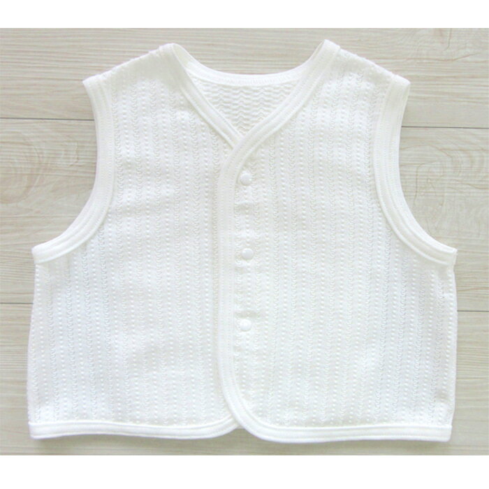商品情報参考年齢:0〜6カ月身長:50〜70センチ体重:3〜9キロカラー:オフホワイト、ベージュ素材:綿100%身幅:32センチ、着丈:31センチ※モニターの発色具合によって、実際のものと色が異なる場合がございます。【日本製】レーシーニット 新生児ベスト 出産準備品 50〜70 オフホワイト ベージュ シンプル 男の子 女の子日本製ベビー服 退院着 お宮参り 羽織 レースのような繊細な柄の透かし編みを施した、ベストです。シンプルながら豪華な雰囲気で、肌寒い日の退院やお宮参りの時にも、お使いいただけます。 ☆日本製 レーシーニット 新生児ベスト☆ レースのような繊細な柄の透かし編みを施した、綿100%ベストです。レース調なので、華やかな印象を与えます。春・秋向け商品です。さらっとして柔らかな生地は、アルカリイオン天然水を使って仕上げてあります。肌に直接当たる衿バインダー部分には、オーガニックコットン100%の生地を使用しました。体温調節がうまくできない赤ちゃんに、ベスト1枚持っていると、とっても便利!肌寒い時、冷房対策に、サッと羽織るだけ(^^♪カラーはオフホワイトとベージュだから、どんな服の色にも合います!オフホワイトは豪華な雰囲気なので、退院着やお宮参りなど、赤ちゃんのお披露目におすすめ♪ベージュは素材そのものの自然な色合いが楽しめ、まるでオーガニックコットンのような、やさしい色味が赤ちゃんにぴったり♪スナップ3個付き。生地・縫製ともに高品質・安心安全の日本製商品です。 衛生管理の行き届いた自社工場で生産した日本製商品 レース調の華やか新生児ベスト 赤ちゃんの体温調節に便利な一品 安心安全の日本製商品をお探しの方に シンプル・上品・華やかな品をお探しの方に 普段使いにもお披露目にも使えるベストをお探しの方に 1