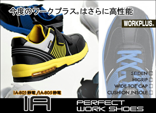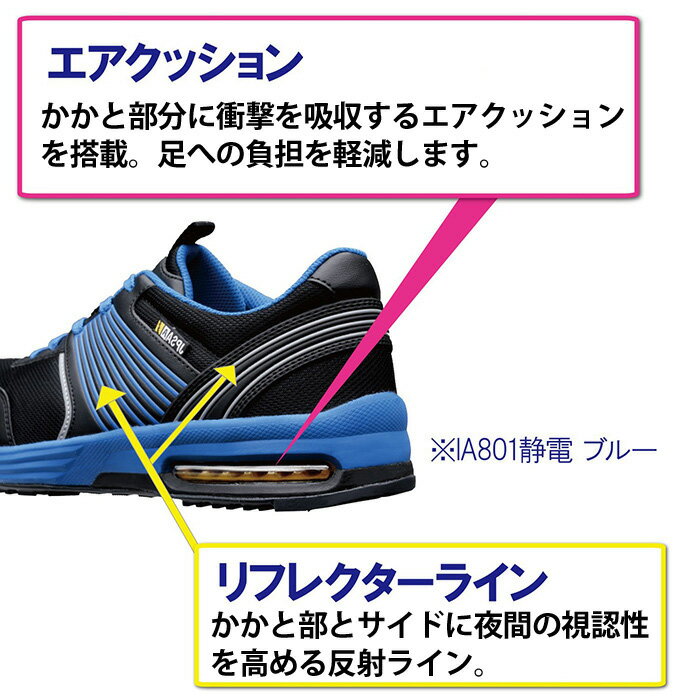 ミドリ安全 先芯入りスニーカー 作業靴 ワークプラスHG(エアクッション) IA-805(旧ISA) 静電 4カラー 22.0〜30.0cm