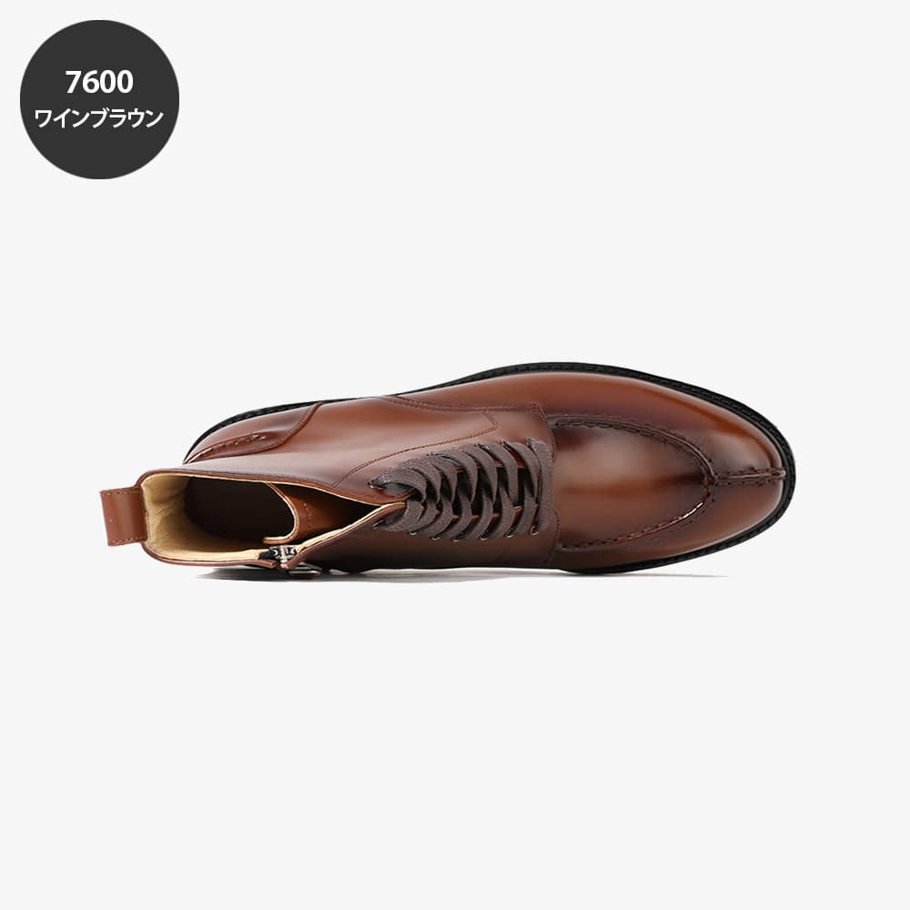 ビブラムコマンドソールYチップ 前鼻が目立つレースアップブーツ(牛革)【メンズブーツ/ブーツ/カジュアルブーツ/Men's/ハンドメイド】【商品名:Firenze Atelier 7600 ワインブラウン、ブラウンアドバン、ブラックボックス】