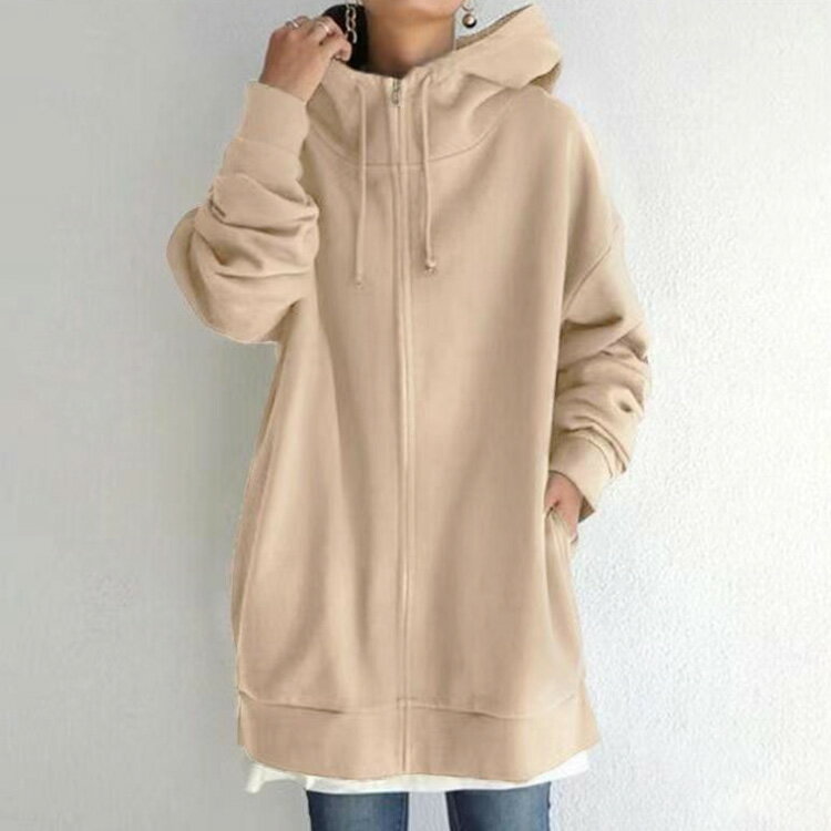 パーカー レディース 長袖 スウェット ロング丈 パーカー ボリュームネック ハイネック フード付き ジップアップパーカー 無地 ロングカーディガン ロングパーカー トップス 体型カバー 着痩せ あったか おしゃれ ゆったり 大きいサイズ 防寒 送料無料 秋冬 春
