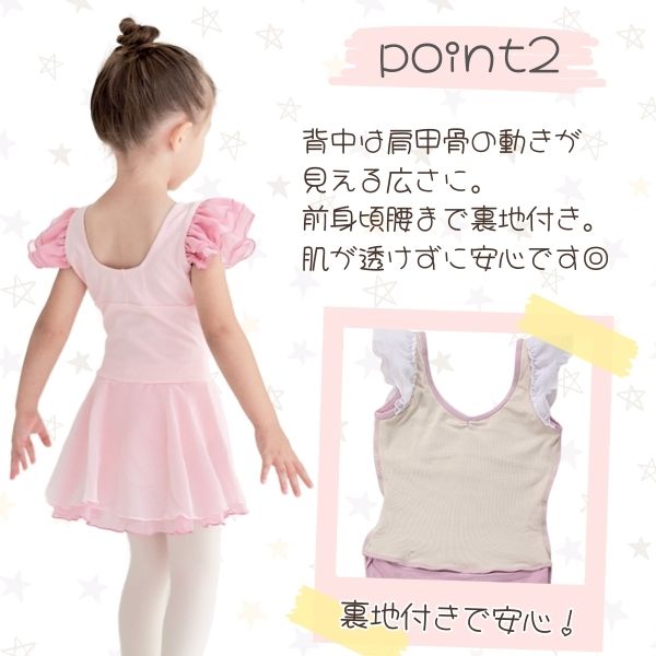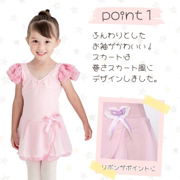 バレエレッスンの必需品 可愛いと大評判の子供 バレエレオタード その名もエンジェルスリーブレオタード★ジャスミン★ スカート付きのバレエにも新体操にも着られるミニヨンオリジナルデザインのキッズ バレエ レオタードです。 エンジェルスリーブと巻きスカート風のスカートがとにかく愛らしいレオタード 大きくなるとこんなに可愛いデザインのものは着せられなくなるので 幼稚園 保育園 小学生のうちにぜひ着せてあげてください。 手の込んだ縫製を必要とするレオタードにも関わらずこのプライスは歴史あるバレエ専門店のミニヨンだからこそ。 安心してお買い求めください。 腰についたリボンモチーフがワンポイントに。 巻きスカート風のスカートは2色を重ねているので、ふんわり感アップ。 上品な色の組み合わせがとってもエレガントです♪ 裏地がしっかりついて肌の弱いお子様も肌が透けるのが心配なお母様も安心! 高品質で長くお使いいただけます。 カラー ミント・ダスティーピンク・ライラック・ダスティーブルー サイズ 115・125・135・145※ふっくらさんやかなり長期的にご着用を希望される方は1サイズ大き目が良いようです。 素材 コットン94%+ライクラ6% 生産国 韓国 お洗濯 手洗い推奨 タイツセット詳細 SINAブランドのバレエ専用タイツをセットにします。 穴あき 穴なし 「ピンク」「ホワイト」からお選びいただけます。 サイズはご購入のレオタードのサイズに合わせて当店でお選びします。 注意点 ネコポスでの発送は1セットまでです。 下着のおまけは付いておりません!