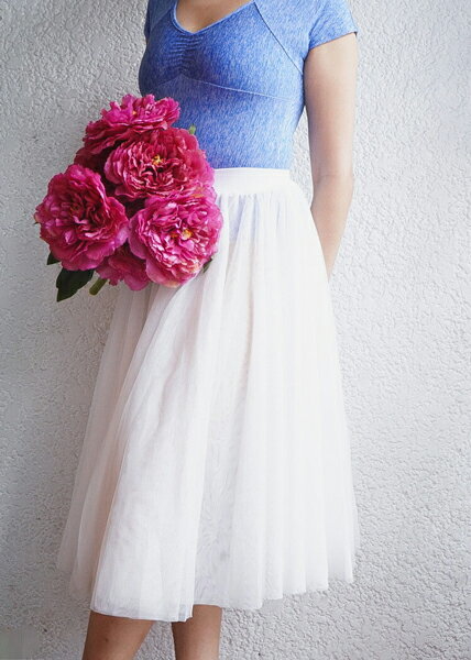 【DancebyLina】ロマンチック チュチュ ボン ロング バレエ チュチュ スカート 大人 ジュニア ウエストゴム ロングチュチュ リハーサル スカート 発表会 練習 チュチュ ジゼル シルフィード ロングスカート バレエ用品 白 ダンスバイリナ チュチュスカート 練習用